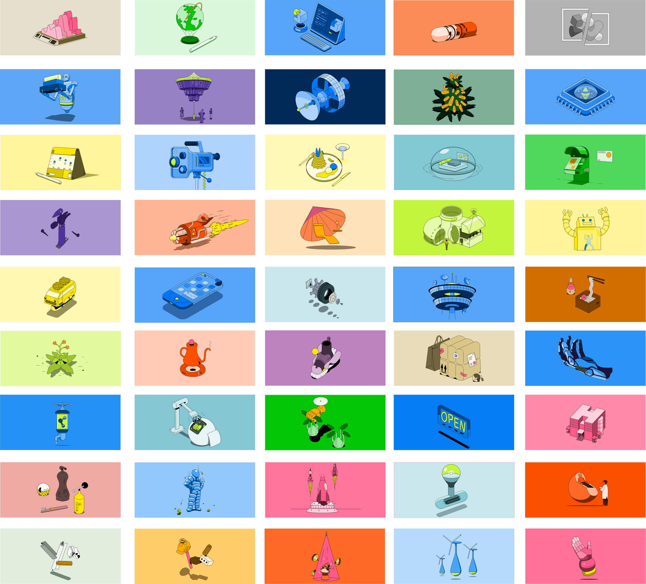 We saw this as an opportunity to extend our illustrated world by pairing each collection with a futuristic representation.